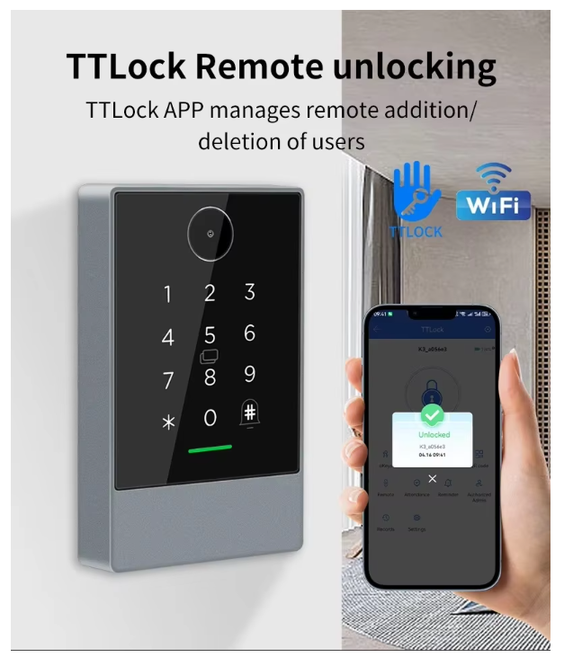 لوحة مفاتيح للتحكم في الوصول بتقنية RFID ورمز الاستجابة السريعة (QR) من TTLOCK، تدعم فتح القفل برمز مؤقت |