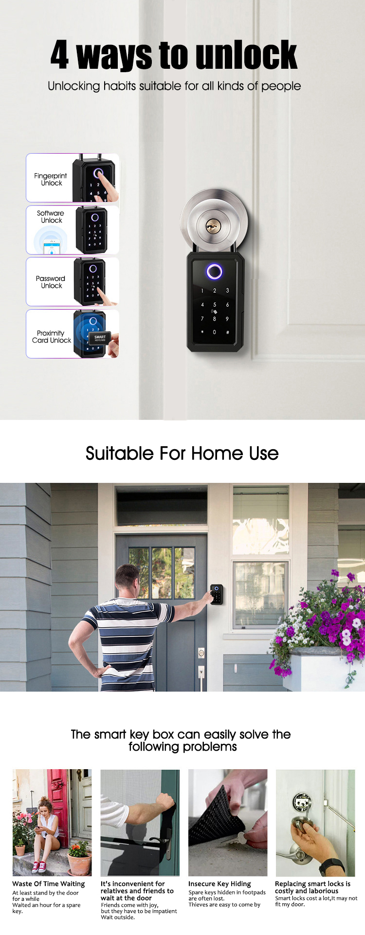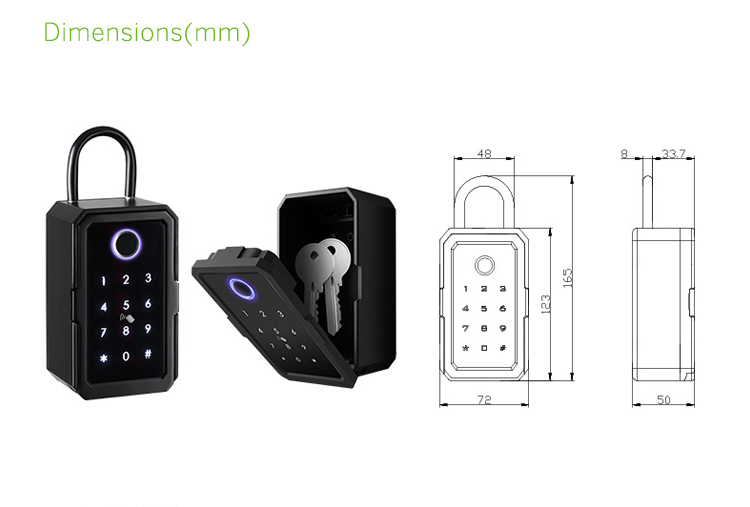 صندوق مفاتيح بلوتوث ببصمة الإصبع، تطبيق للتحكم عن بعد، مثبت على الحائط |